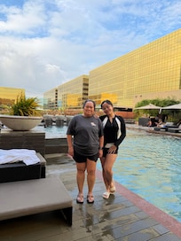 Yes, this property has an outdoor pool and a children's pool. Pool access is from 7:00 AM to 8:00 PM.