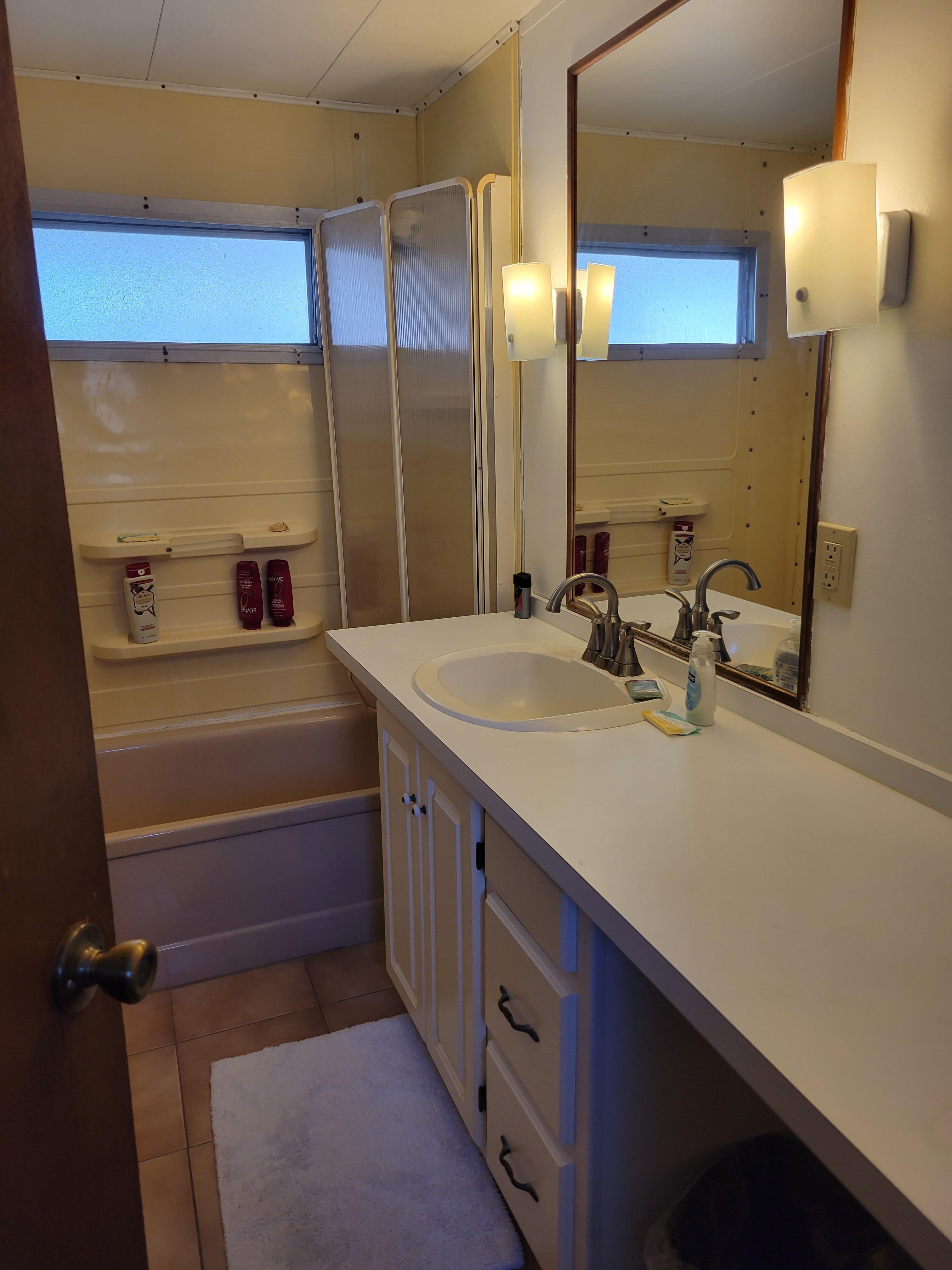 Nice trailer on canal. Bathroom needs updating, especially shower door. Nice bed and livingroom areas.