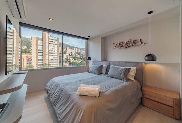 Welcome to this luxurious and modern 2 bedrooms, 2.5 bathrooms apartment located in the heart of Medellin's trendy Alejandria neighborhood. With its centralized A/C, spacious layout, and stunning city views, you'll feel right at home during your stay. And with a prime location just minutes away from famous landmarks and local attractions, you'll have everything you need to make the most of your visit to this vibrant city.