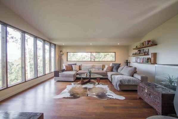 Healesville town is 3.5km away from the house, mostly downhill into town, but an uphill walk home; why did you think the views are so amazing?! There is a bus stop at the main road about 800m from the house that runs between Lilydale and Healesville. There is also a number of taxis and drop-off bus service that operate around the town. Details in the house guest book.