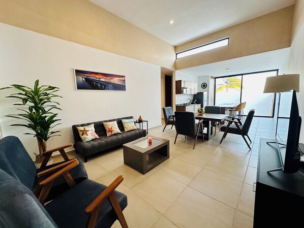 Modern new build, one level with private pool, walk to the beach and restaurants