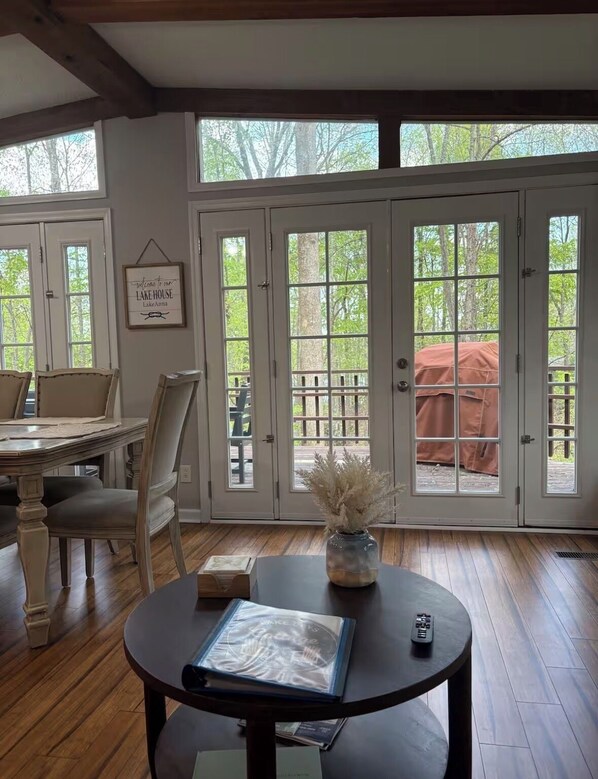 Welcome to Lake Days Cottage. Lake access with boat slip. Recently renovated with new paint, flooring, lighting, updated kitchen and bathrooms. Cozy four bedroom two bath. 2 large King bedrooms, 1 Queen bedroom, Plus game room in basement which includes a Double bed, large sectional, poker / game table. Smart TV's in every room. Internet, Fenced Yard, Deck, Grill, Laundry, Large parking area, Fire Pit, Access to Morgan 1 & 2 community area with boat ramp, beach, picnic areas and boat slip.