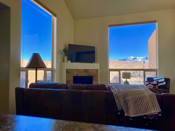Relax and unwind after a full day of activity in Moab. Great views of the LaSal Mountains from spacious bi-level Rim Vista corner unit. This new unit offers you the best location in the community across from the pool and hot tub, with ample room for parking. Wake up to freshly made coffee provided by your Keurig maker. Enjoy grilling on the gas BBQ, while sitting in the private outdoor patio with afternoon and evening shade. No caps or worries on internet speeds - unlimited 1 gigabit (1GB) internet speeds are provided by fiber for all your streaming needs.