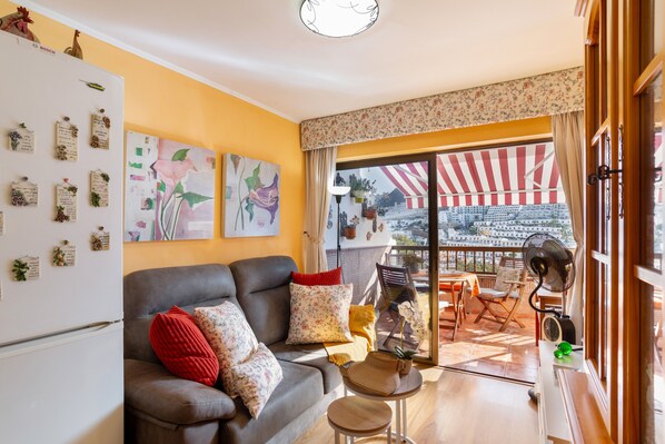 Located in Puertorico Mogan, this 50 sqm vacation home welcomes up to 4 guests with 1 bedroom and a living room. You will find 1 bathroom and a private fully-equipped kitchen. The property offers mountain and sea views, along with private WiFi suitable for video calls, TV with video on demand, fan, washing machine, and a dedicated workspace.