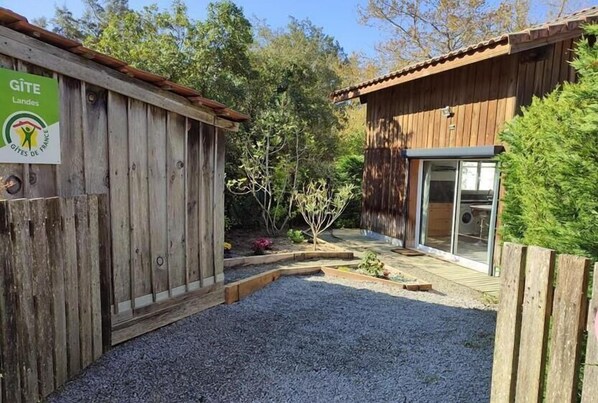 Nestled between the ocean and the forest, Moliets-et-Maâ is one of the must-see seaside resorts in the Landes region. Here, everything exudes nature and escape. This little corner of paradise has everything to seduce you. With its wild beaches, pine forests, and unique heritage, Moliets promises timeless moments. Moliets is a village that is at once discreet, lively, vibrant, and surprisingly "natural" thanks to its Courant d'Huchet Nature Reserve and its extensive beaches. The main beach is a must-see for swimming and surfing. It's also the lively and commercial heart of the resort. Moliets offers one of the most beautiful golf courses on the Atlantic coast, perfect for a sporty break overlooking the ocean, as well as beautiful bike rides on the well-maintained and easy-to-follow cycle paths that wind through the pine forests and the Landes countryside, allowing you to enjoy the scenery. For a relaxing vacation for two, the Insanto cottage, adjoining the owner's, welcomes you. Located on the ground floor, it offers a spacious living room with a pleasant fitted kitchen, a high table with stools, an American-style refrigerator with a freezer compartment and a refrigerator compartment (water dispenser), an oven, a microwave, a 3-burner induction hob, a dishwasher, a front-loading washing machine, and a bay window overlooking the private garden. Two steps down to the living room, a television, and Wi-Fi access are provided. One bedroom with a double bed (140 cm), a bathroom with a shower and toilet. A small 60 m² garden area with a terrace, garden furniture, and an electric barbecue allow you to enjoy summer evenings. For your comfort, bed linens, towels, household linens, and cleaning are included. Parking is available in the garden, and a shed is available for storage. Semi-detached gîte, not overlooked. Golf, ocean, shops and all amenities just 1 km away