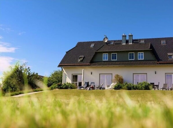The “Feuerstein” holiday home is ideal for vacationers who would like to live generously, several or large families, possibly with their grandparents together under one roof. Workation (the fusion of work and vacation) is also possible with us. The house "Feuerstein" has enough space for a relaxing vacation with 4 bedrooms, 2 bathrooms shower + tub, fireplace, sauna, a furnished terrace and a large garden towards the south with a non -built view of the bodden. With a free and fast WLAN fiber optic connection, we are also at the forefront on Rügen! Particular importance was attached to the generosity of the rooms and the tasteful high -quality equipment.