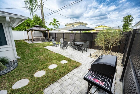 Guests are the heart of everything we do. Welcome to our unique home, where you can walk to the beach, mercato or restaurants. Enjoy the comfortable higher end furniture, the evenings by the fire pit in a fully fenced backyard, beach bikes, grill, office space with high-speed WiFi, and much more.