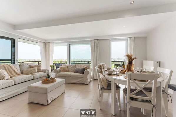 From the living room/kitchen you have a beautiful view over the harbor channel, the promenade and the Maritime Park of Nieuwpoort. It is lovely to relax on the terrace with garden furniture. As well as the swimming pool and all other facilities are visible from the terrace.