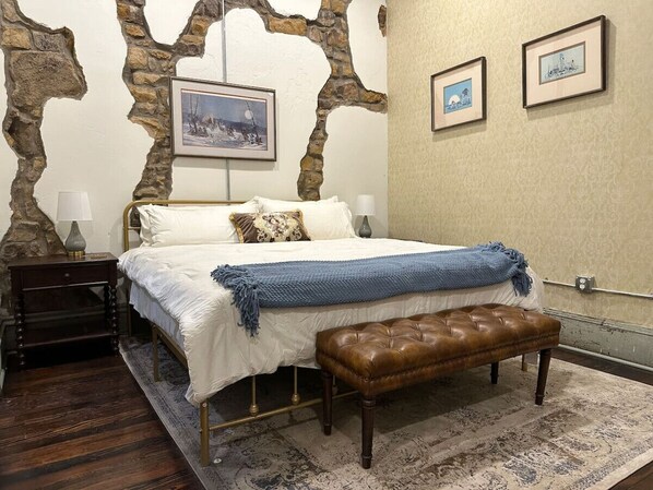 Enjoy this entire space! Ascend the building’s original staircase upon entering to a chandelier-lined corridor off which the inn’s six private rooms stem. Each room feature a king bed, private en suite bathroom, TV, and coffee bar with Keurig and mini fridge. Windows are adorned with velvet blackout coverings. The furnishings and decor - both antique and modern - were intentionally selected for each room with style and function in mind.