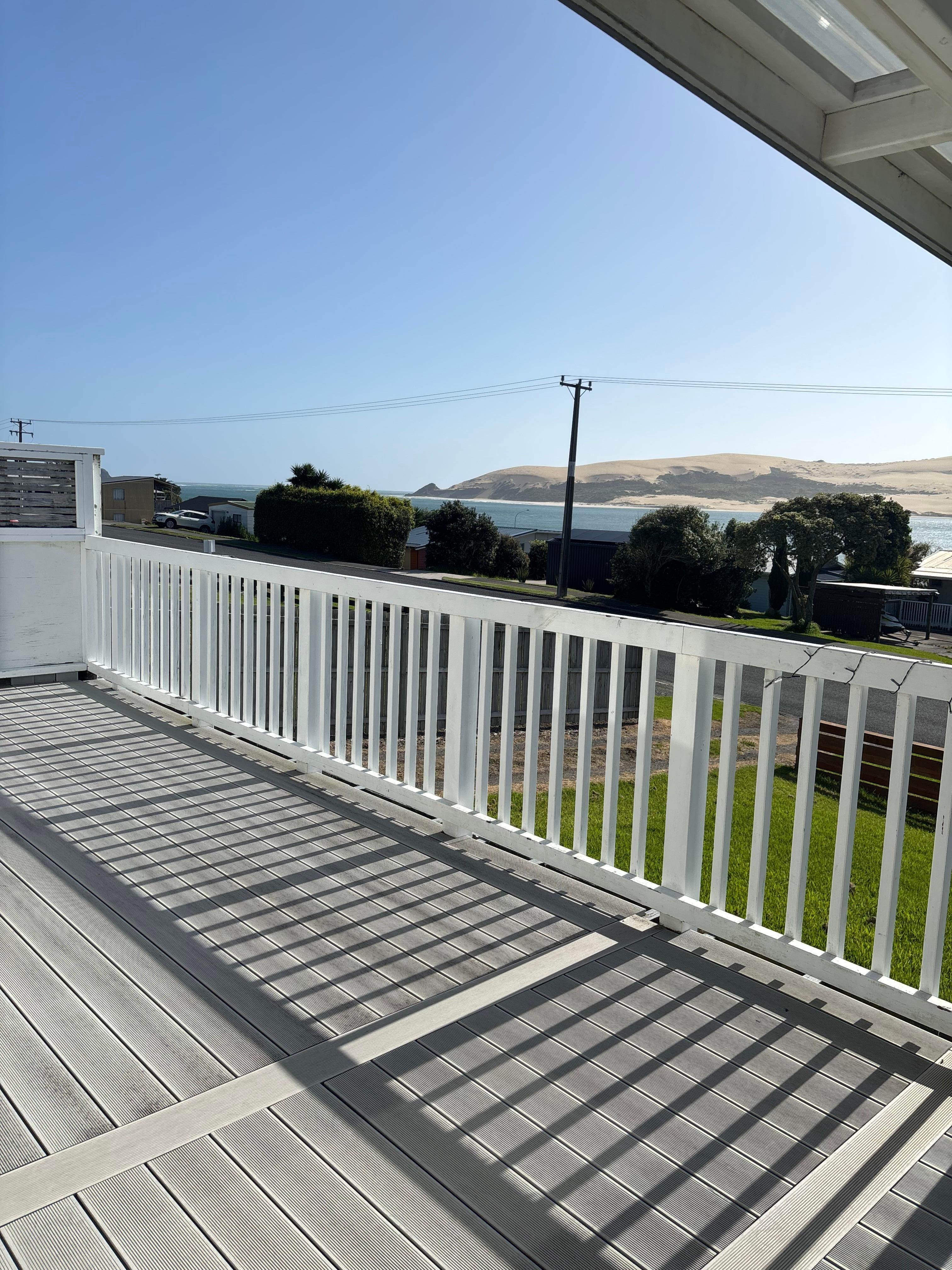 The front deck features a large dining table and gas BBQ plus fabulous views of Hokianga harbour, sand dunes and often stunning sunsets.
