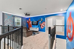 You don`t need to go into a theme park to have some good old-fashioned fun - the garage has been transformed into your private game room! Try your hand at the Arcade, dual hoop basketball, and foosball table while listening to music or watching a movie on TV.