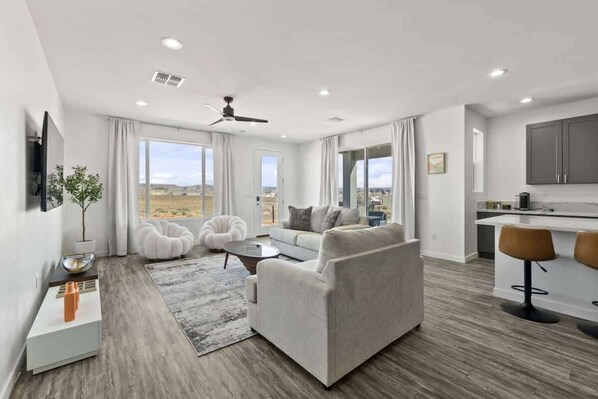The highlight of Stargazer is undoubtedly its small rooftop deck, where you can enjoy the wide open views of Lake Powell and Lone Rock. Spend evenings stargazing at the expansive desert sky with the provided telescope. As night falls, soak your worries away in the luxurious hot tub on the lower deck.