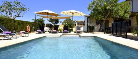 Outside, the highlight is the marvellous and refreshing chlorine pool, measuring 5 x 3 metres with a depth ranging from 1 to 2 metres. It is equipped with a safety fence for children. The outdoor areas also feature 2 porches with dining tables, a fantastic built-in barbecue, and a children's play area. An outdoor bathroom with a shower completes the exterior amenities. The property is fenced and offers complete privacy. The two-storey house has a simple and cosy style, perfect for enjoying a wonderful holiday. On the ground floor, you will find a living room with satellite TV and a decorative fireplace; followed by a spacious dining room for 6 guests; and finally a kitchen with a wood stove, induction hob, breakfast table, and all the equipment needed for holiday cooking. The separate laundry room includes a washing machine, iron, and ironing board. The first bedroom with a double bed is also on the ground floor, as well as a bathroom with a shower. Upstairs, there are 2 more bedrooms, each with 2 single beds and access to a large terrace. Another bathroom with a shower completes this level. The house is equipped with 4 fans, and a cot and high chair are available if you are travelling with a baby. This lovely house is located on the outskirts of Porreres, where you will find all the basic services needed for your stay, such as supermarkets, bars, and restaurants. The nearby road will take you to the wonderful beaches of the southeast of the island, such as Calas de Mallorca, Portocolom, and Cala d'Or. The area also offers various cycling routes and the opportunity to play your favourite sport at the nearby Son Antem Golf Course, just 20 km from the house. Consult the advertiser for possible charges. Pets are not allowed. The holding of events is forbidden. There is exterior parking for 0 cars. Distances Beach: 27.6 km - Cales de Mallorca Airport: 32.6 km - Aeropuerto de Palma de Mallorca Golf course: 22.2 km - Golf Son Antem-Mallorca Town: 0.600 km - Porreres Train station: 19.7 km - Manacor Bus stop: 0.750 km - Porreres Ferry: 44.2 km - Palma Hospital: 20.5 km - Hospital de Manacor Tourist license: ETV/3328Single Rental Registry: ESFCTU00000700800027463900000000000000000000ETV/33280The Ecotasa (tourist tax) must be paid cash on site when checking in. The amount varies between 0.55€/night and guest during the low season and 2.2€/night and guest during the high season. The tax is reduced by half from the 9th day of your stay. All guests have to pay the Ecotasa, except people under 16 years. Extra Cot (January - December): 4 EUR/Night (optional)