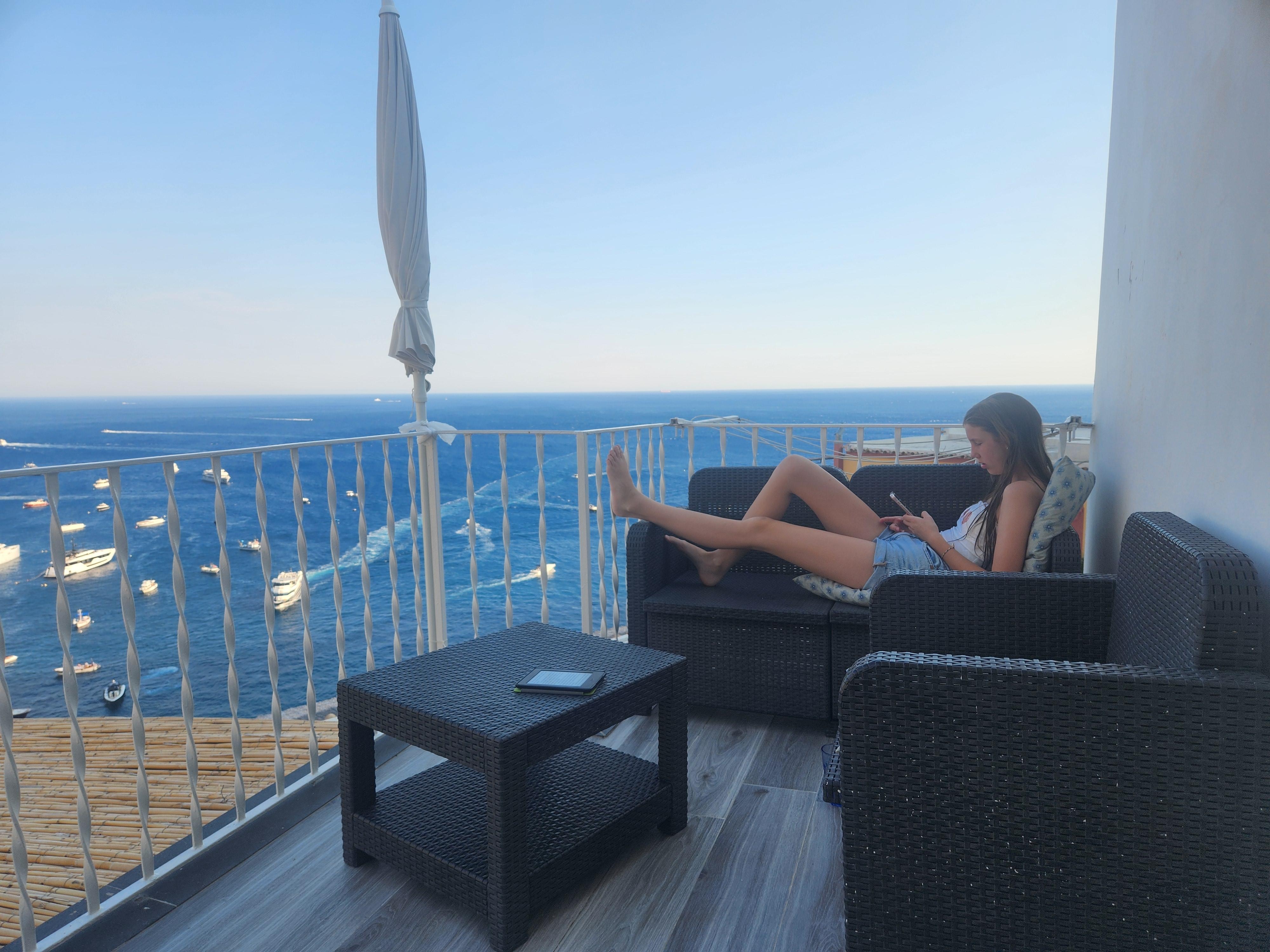 Casa Leonilde is a cute 2 bedroom property that has recently been refurbished to a very high standard paying special attention to every small detail. It’s centrally situated on the steps leading up from the Big Beach. The terrace is the idyllic spot for dining or relaxing, reading a book whilst sipping a glass of prosecco. A panoramic sea view can be seen from every room. You can even shower with a view! Off the dining room there is a small Romeo and Juliet Balcony perfect for two.