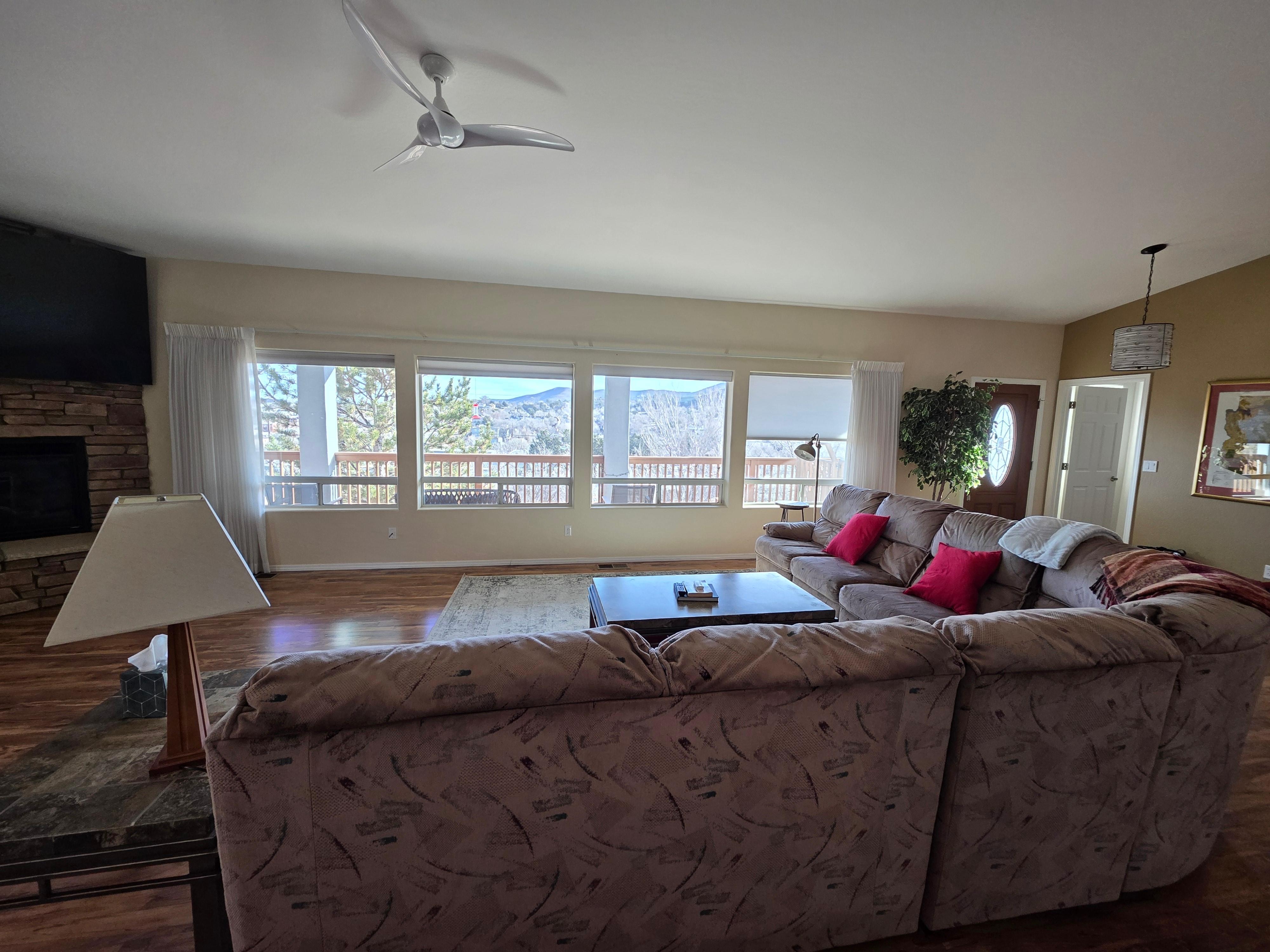 Great room, kitchen, bedrooms and baths, all super clean decks and outdoor spaces were welcoming - The outside dining table was used often. Can't beat the views and the closeness to downtown and the Granite Creek pathways. Heat responded well, and was needed only for part of the night. Kitchen appliances and serving dishes aplenty. As long-time Prescott residents, coming back to visit friends and family, we feel this is a great offering to use as a home away from home, and get together with loved ones.