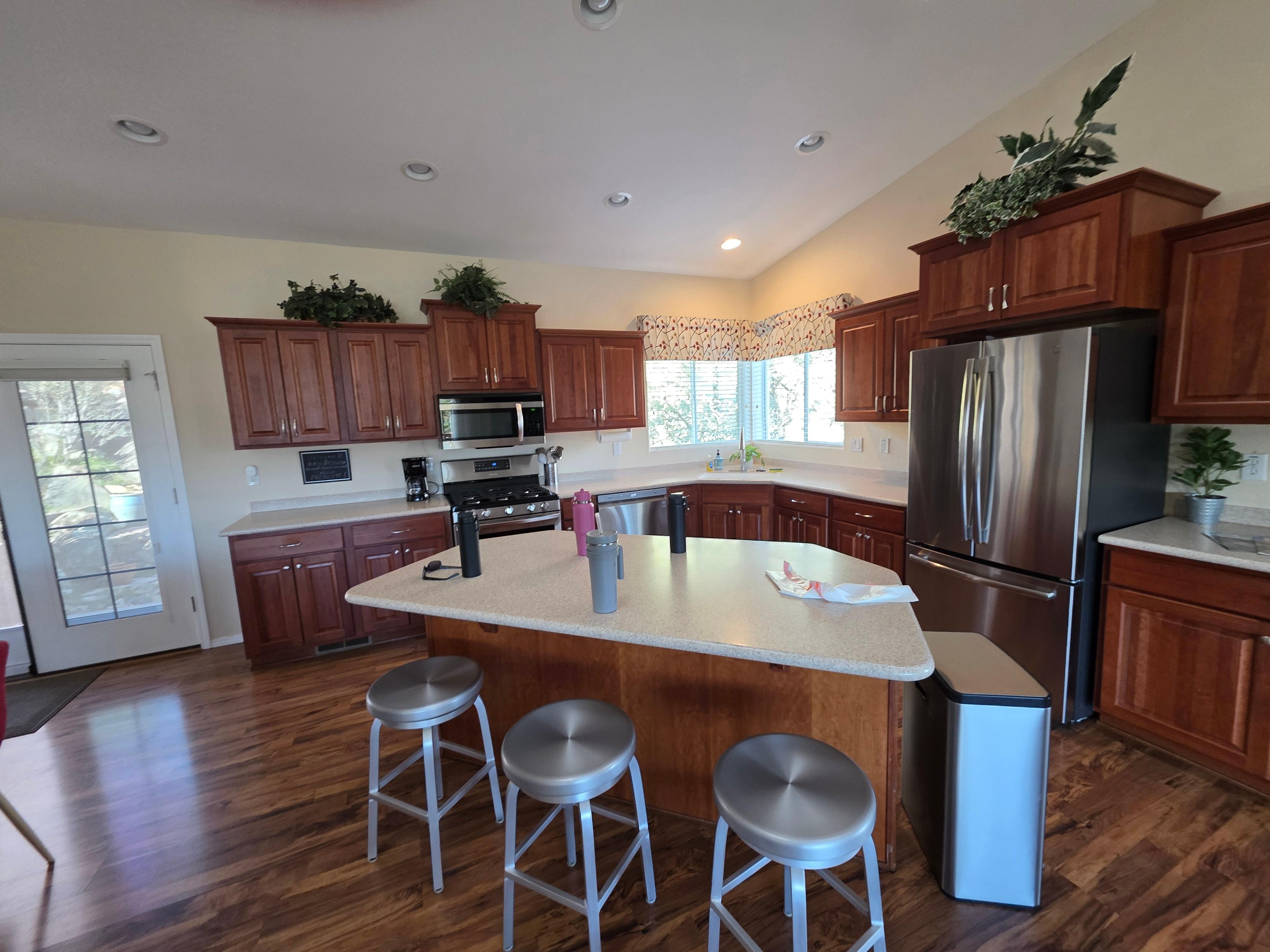 Stayed in November 2025 with daughter, her husband and 2 grandkids. This house was great for us. Plenty of room in kitchen, dining and living room. Bedrooms were comfortable. House was clean and well stocked with dishes, silverware, etc. Location is near downtown Prescott so we could walk to tour the shops and eat at local establishments. Todd, the owner, was good at communicating with us. The only concern for a renter might be the steep gravel driveway. Not ideal for seniors or if you need to push a stroller. The neighborhood was very quiet and we had 12 deer visit right outside the house, which the grandkids loved. If you are really picky, it might bother you that the house is missing a couple of window shades and there is a squeaky place in the kitchen floor. However, for our family it was great and we would definitely stay again.