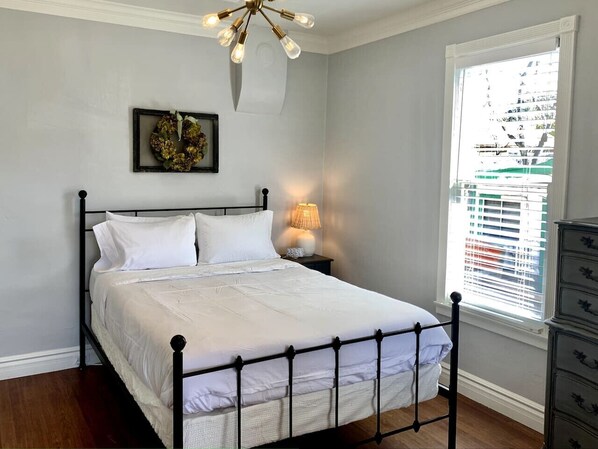 •The second bedroom has access to the covered porch and features a Queen bed.