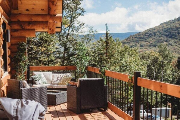 Majestic log cabin in a unique style. Enjoy a relaxing stay in an enchanting setting with a privileged view of Le Massif du Sud!