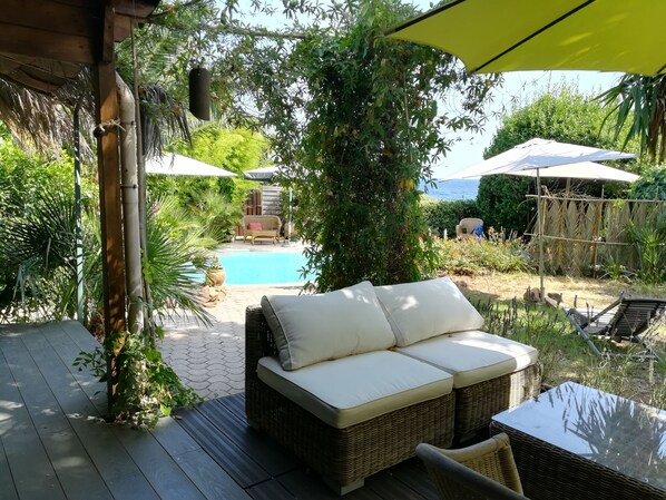 位于海滩的度假小屋,提供室外游泳池