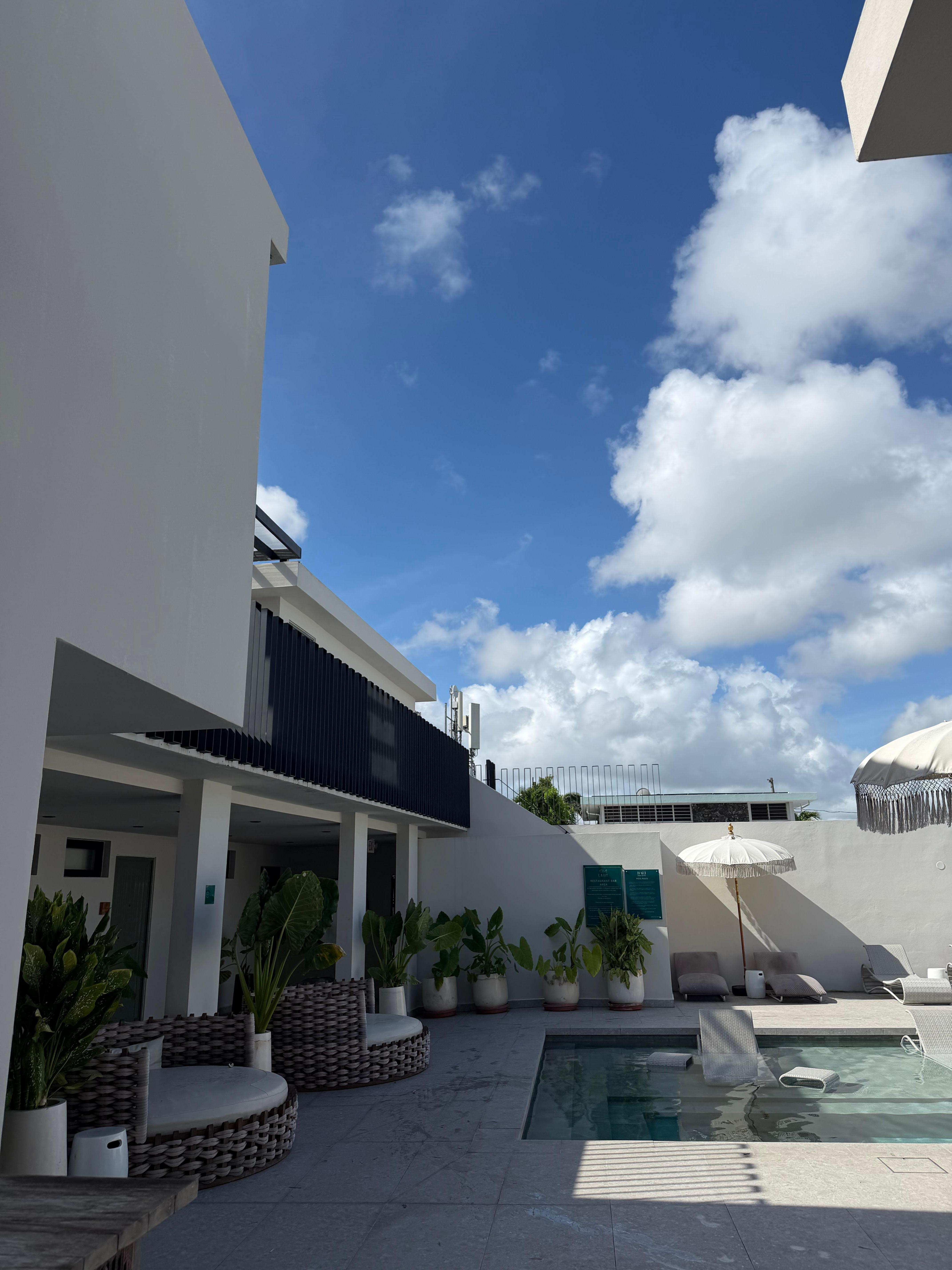 Clean, great food and drinks. Bartender was great. This is a great place for solo travelers and couples. 5 mins from the airport so it was very convenient. Only thing is I wish they had more pool chairs.