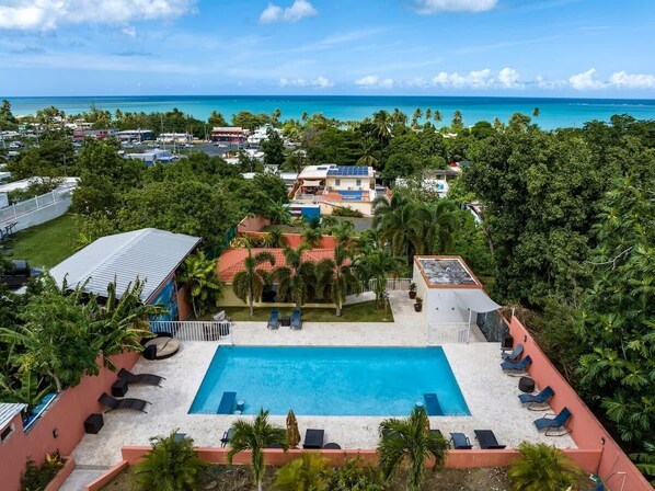 The entire house and surrounding front yard are available to you. The yard has papaya, mango and avocado trees - help yourself when they are ripe. The backyard is off limits because the land is quite steep. Agape' Anchor guests have exclusive access to our private pool. This includes guests from our other Villa, so you will share the pool with them if any are staying there. The pool area is quite large (20 by 40 foot pool) with large sunbathing areas and covered gazebo (it's similar to a hotel pool in size and amenities). There is plenty of space for everyone and only are guests are allowed access to it.