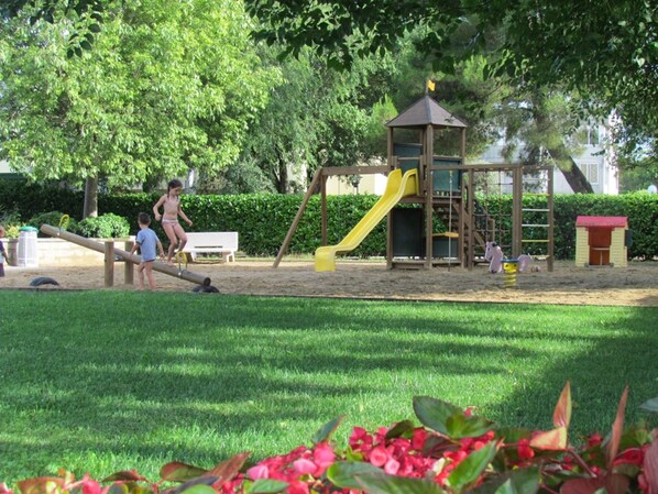 Flat for up to seven guests in an exclusive residence with 12 swimming pools, children’s play areas, sports courts, located 1.2km from the beach. °Photos are generic and representative of the accommodation type (furniture, décor, colors and view may vary). The flat is composed of a living room with a double sofa bed, a kitchenette, a bedroom with a bunk bed plus a single bed, a second bedroom with a double bed, a full bathroom, and a balcony. It comes with A/C, and one private parking space. °Washing machine only upon request and subject to availability.°Swimming pools are open seasonally (mid June/early September): exact dates may vary due to weather or maintenance.