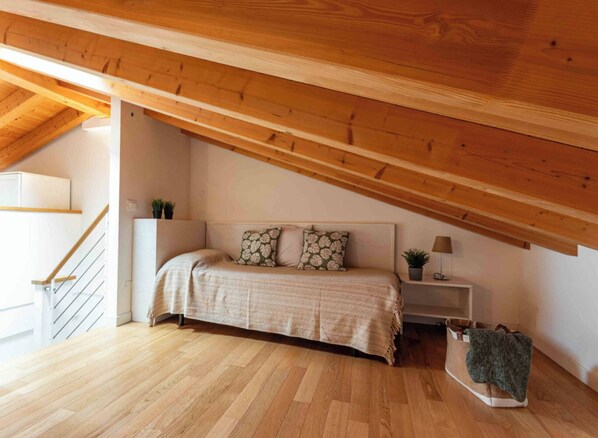 Luminous flat with attic with pool