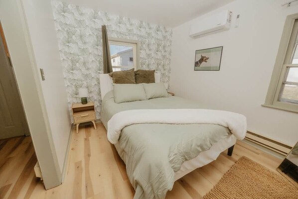 This place is a wreck. It's an extremely old building, poorly renovated for the purpose of short-term rental. The floors are uneven throughout, the bathroom smells like urine, the washer and dryer didn't work, the ceiling lights were bare light bulbs with no fixtures, the bedspread was stained, the plumbing leaked at the hot water heater, one baseboard heater didn't work at all, others didn't have control knobs, one control was hanging from a bare wire, one of the splitter units didn't work and leaked water down the wall and puddled on the floor next to the bed, door knobs were loose, the furniture was tacky, there were no tables nor places to set anything down. It was agood place for dogs to stay. We left after one night and took a big hit () for the cancelation.