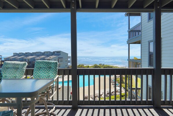 The condo was clean, very spacious, nicely decorated, and well stocked with all the comforts of home. The linens, beach towels, and beach chairs were all provided which was greatly appreciated and allowed us to save space in our car for the trip. The view from the balcony was perfect with unobstructed sights of the ocean and pool. It was the perfect spot for our morning coffee or evening happy hour. Terrie was responsive and a joy to work with. She’s probably the best host I’ve engaged with in all my VRBO stays. We hope to stay at the condo again next summer!