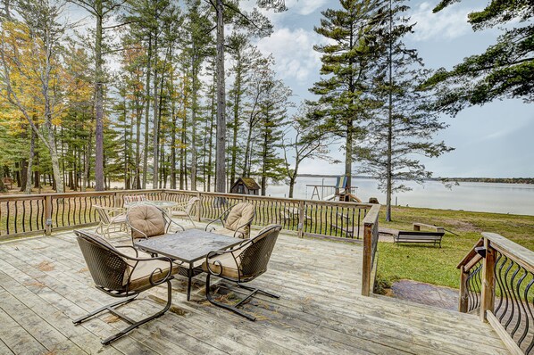 Amazing, sleeps 26, covered lakeside, bar, beach, Big St Germain Lake
