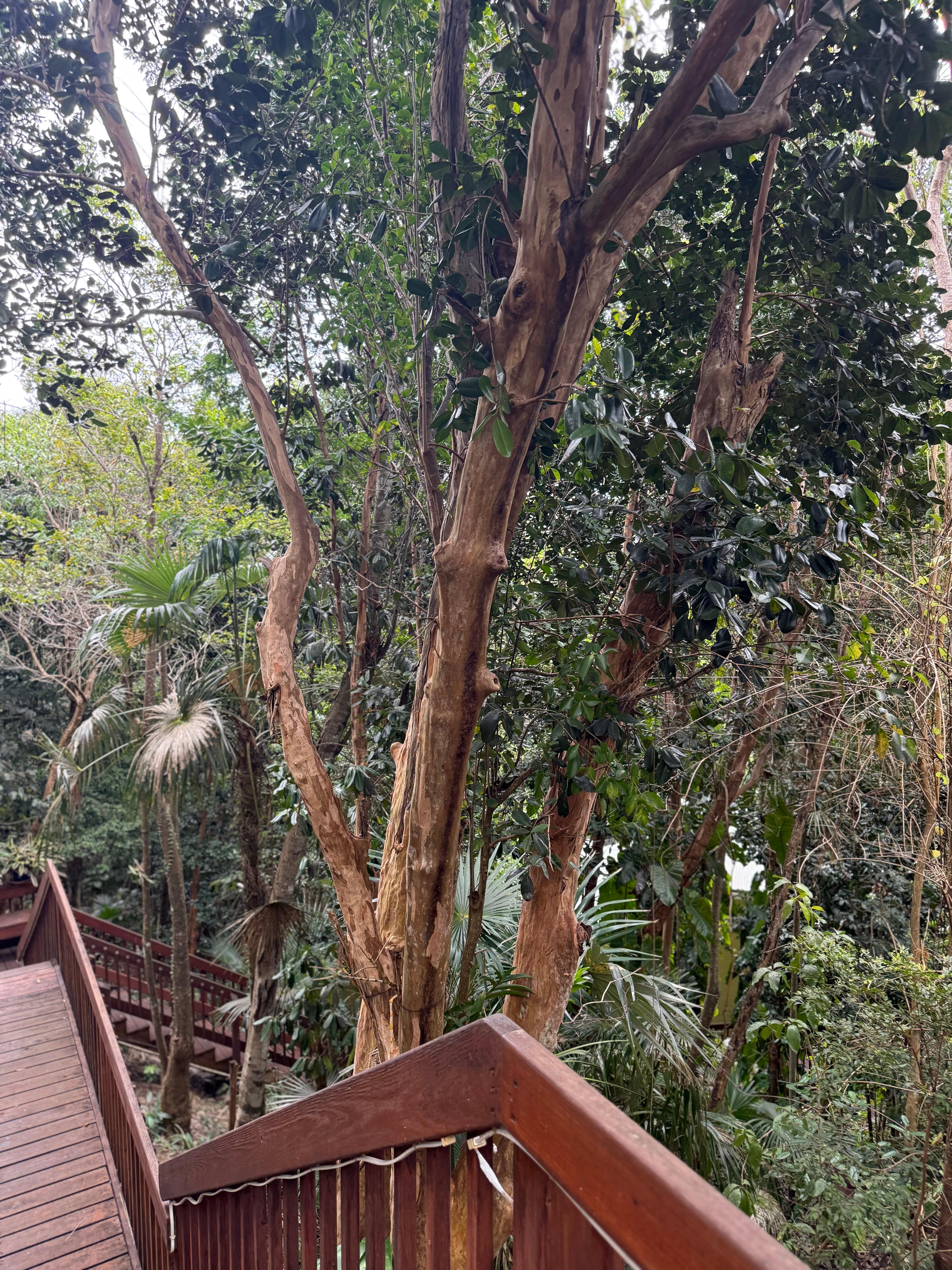 The second sleeping area is a cozy loft bedroom located upstairs from the main living area. There is a narrow and steep flight of stairs that lead to a loft fully enclosed by railings with a queen bed and private dressing area. The queen bed looks out on a beautiful water view through the treetops. Please note, this bedroom is not suitable for young children due to the railings and stairway.
