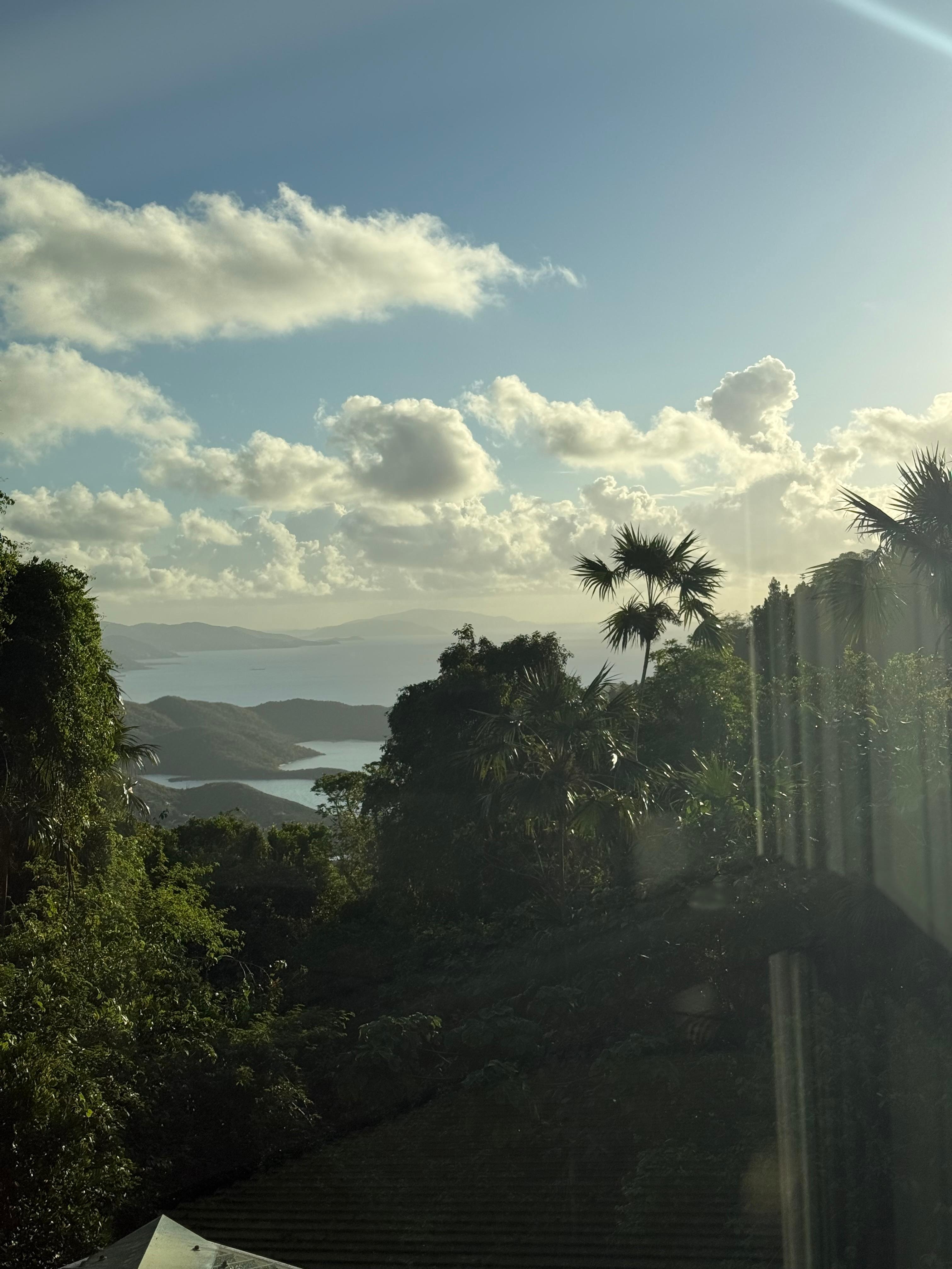 Step through the French doors from the living room out onto the lovely screen porch where you'll find your choice of lounge areas - with swinging and seating options! There are two swinging hammock chairs framed by a beautiful view of Caribbean blue water and the British Virgin Islands through the trees. Around the corner there is a comfy conversation set where you can relax with a book and coffee, listening to the gentle tweets and chirps of the rainforest. There is a dining table that seats 4 to enjoy your meals ‘al fresco’ on the corner of the screen porch.