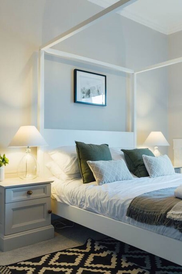 The Riverside Apartment has been recently renovated throughout with it`s original features retained. The large living room is a highlight with a Smart TV so you can login to Netflix/Prime etc. The master bedroom features a king sized 4 poster bed and the second bedroom has a double bed. Both bedrooms have wardrobes for ample clothes storage. There is a large fully equipped kitchen with attached dining area seating 4. A separate office with desk is great for getting some after hours emails done.