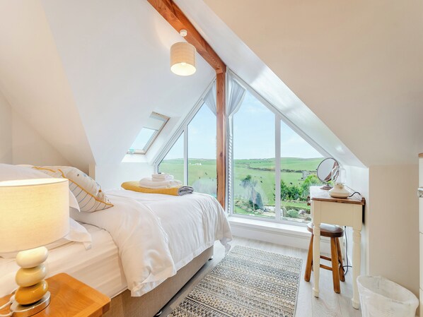The heart of Seascape Barn lies in the open plan living, dining area and kitchen area where every detail has been thoughtfully considered. Immerse yourself in the breath-taking surroundings through the floor-to-ceiling windows that frame the stunning sea views. Every moment spent here will be enhanced by the beauty of the natural landscape that stretches before you.