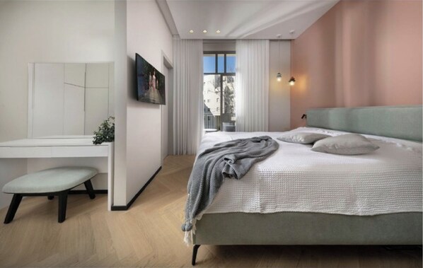 公寓, 庭院景观 | 2 多间卧室、遮光窗帘、熨斗/熨衣板、免费 WiFi