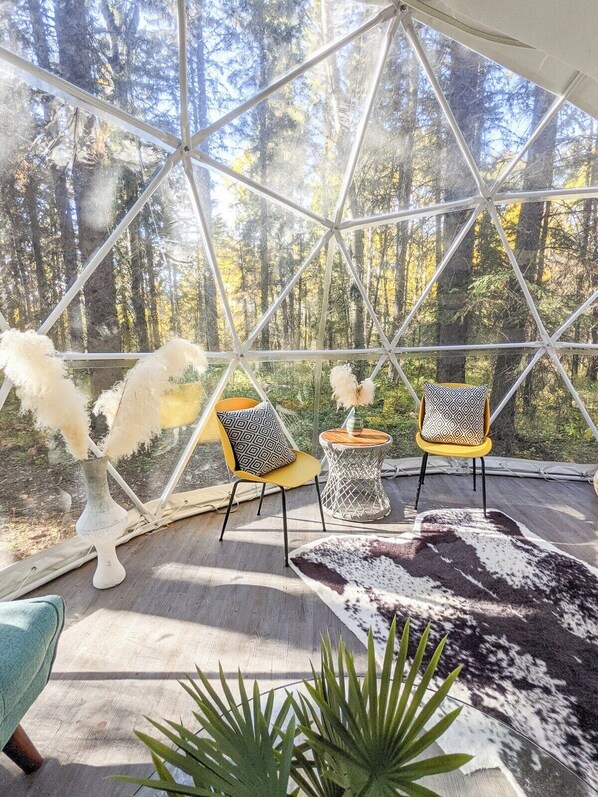 The 5-person occupancy of this geodome is based on 2 adults and 3 children. Please contact us with other group dynamics and we'll recommend the best options.