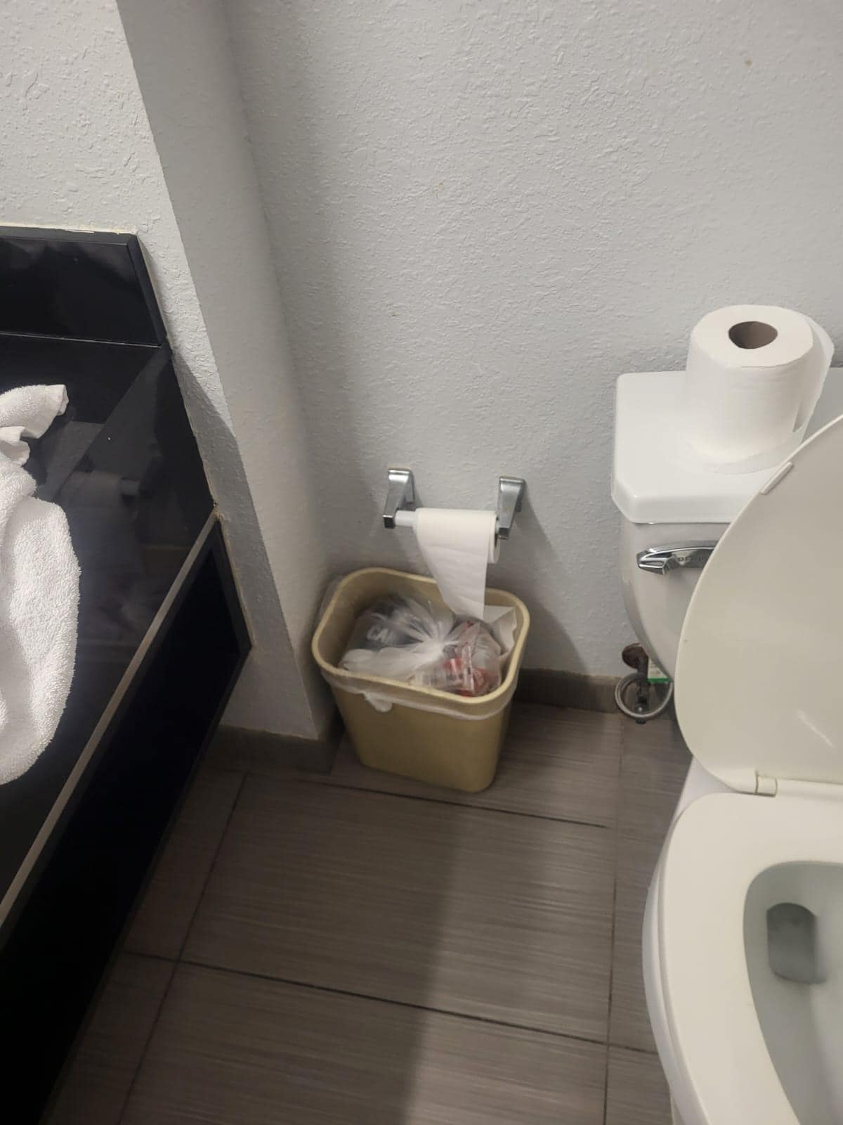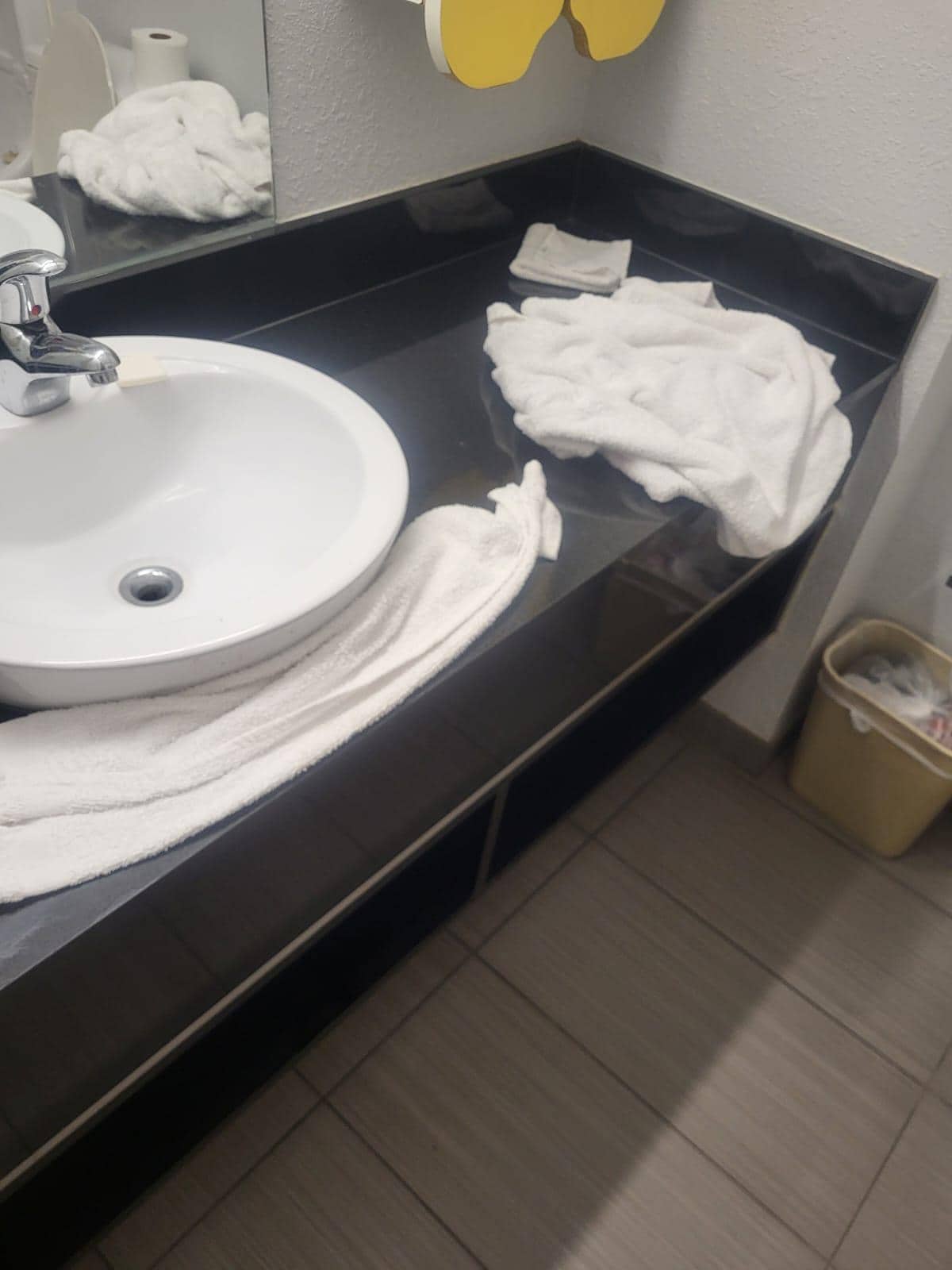 Upon on entering the room i has flabbergasted! The room was an utter mess! Towels on the bathroom sink, garbage in the bins, bed wasn't made, the table had garbage and some liquid stained and the kitchenette was a mess! A filthy room over all. I wasn't impressed.