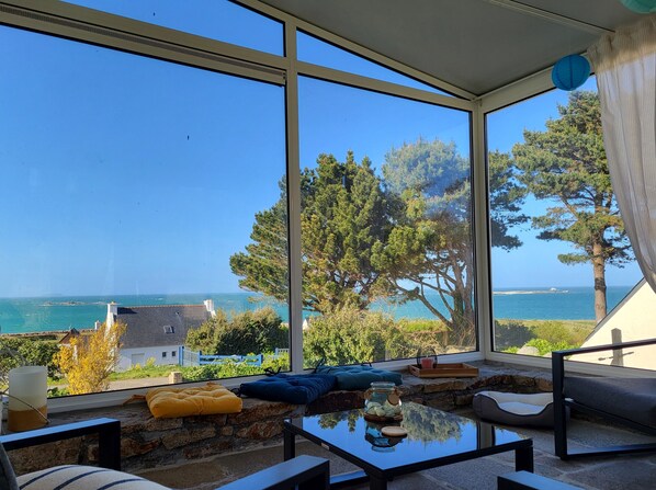 Brittany vacation home with sea view & conservatory, 8 persons, top location close to the beach