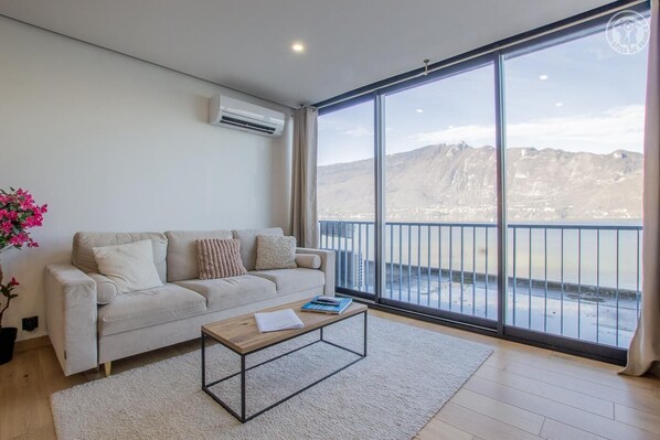 Apartment located on the second floor of a residence comprising 6 floors and several accommodations. Entrance, living room - living room - kitchen, 1 bedroom with glass roof opening onto the living room (1 double bed 160 x 200 cm), 1 separate toilet, bathroom (walk-in shower). Connected television. Decorative fireplace. Private parking at the residence without private space. Reversible heat pump heating. Comfortable, very bright apartment. Large bay window with clear views of Lake Bourget and the Dent du Chat. Warm and cozy interior, neat and refined decoration. Cocooning atmosphere for two people. Equipped kitchen with wine cellars. Comfortable city break in a roadside residence facing the famous Lac du Bourget. Downtown Aix-les-Bains, spa town 2.5 km away. First beach with water activities in summer 600 meters away. Entrance gate to the Massif des Bauges regional natural park via Pugny-Chatenod 9 km away. In winter, Savoie Grand Revard Nordic area and alpine ski resort 27 km away. Lac du Bourget cycle path 200 meters away. Chambéry, capital of the Dukes of Savoy, 15 km away. Shops and services nearby all year round.