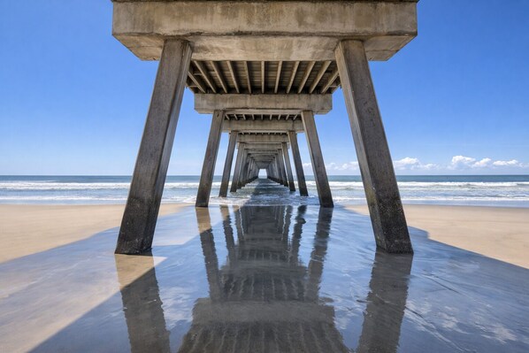 Wake up to the sound of seagulls and ocean breezes drifting through your balcony doors, sip your morning coffee as the island comes alive, and spend your days exploring Tybee’s local restaurants, beach shops, and iconic pier — all within walking distance. Then take a sunset dip in the rooftop pool under the glow of coastal skies.
