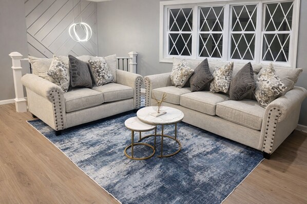 Escape to this modern staycation getaway built for relaxation and fun! Enjoy a hot tub with a TV right outside, perfect for streaming your favorite shows or the game.