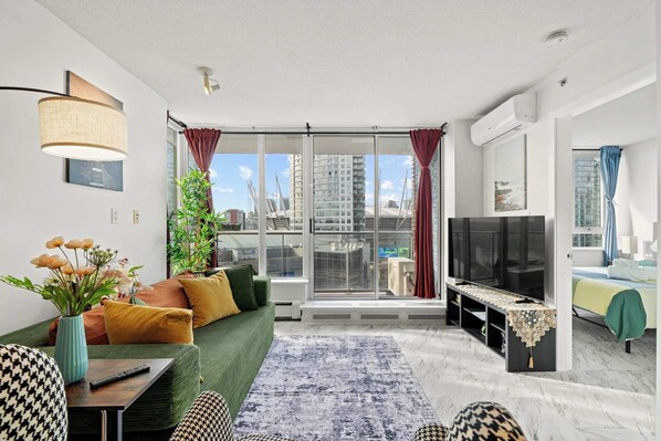 Experience Vancouver in style! This modern condominium offers stunning city views and is ideally located next to Rogers Arena. Enjoy a well-equipped kitchen, a relaxing hot tub, and access to a fully-equipped gym. Explore nearby attractions or simply unwind in this perfectly located retreat. A comfortable stay awaits! Step inside this stylish condominium and discover a thoughtfully designed space perfect for your Vancouver getaway.