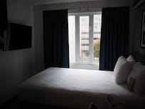 一張雙人床,帶獨立浴室