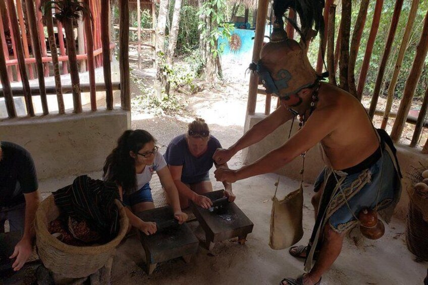 之後,我們出發前往瑪雅村莊,這將帶您回到過去。自己製作巧克力並享受其風味,參加古老的球賽,瑪雅舞蹈和其他活動。