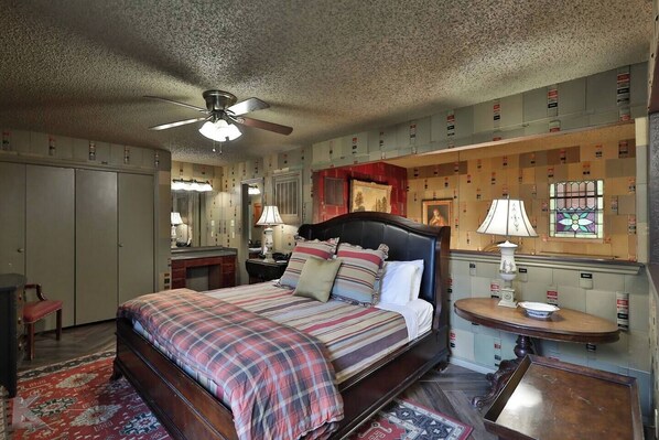 Our exquisite Edwardian English Library-style residence that transports you to the refined elegance of a bygone era. Adorned with the backs of 3,000 vintage law books from the esteemed library of a century-old local law firm, every wall tells a story, maintaining an English Library aesthetic infused with the DNA of Abilene.