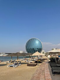 This luxury hotel on Al Raha Beach has a private stretch of sand. Guests enjoy international dishes at five restaurants and relax at the Body and Soul Spa with Swedish massages. Free in-room WiFi complements water sports, volleyball, and racquetball/squash facilities.