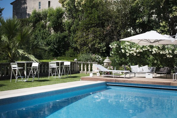 • A seasonal outdoor pool, along with sunloungers and pool umbrellas