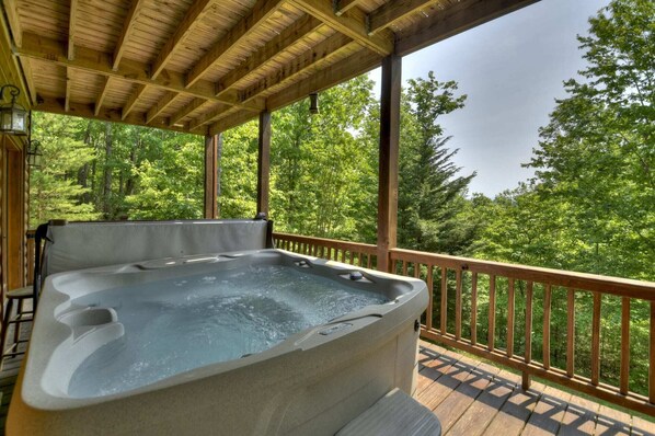 Recreational amenities at the cabin include a hot tub.