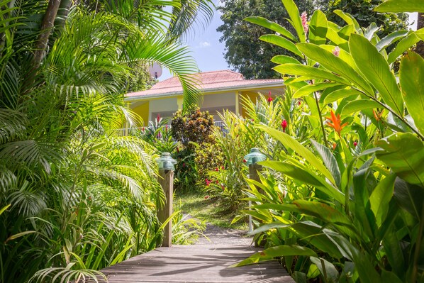 Wir waren 1 Woche auf der Insel und bei Yves und Victoria zu Gast. Es war einfach traumhaft. Die Lage in Bouillante ermöglicht es, in kurzer Zeit an jedem Ort der gesamten Westküste zu sein. Die gemütlichen Ferienhäuser liegen mitten im Regenwald oberhalb der Küste. Ein Auto ist zwingend erforderlich. Die Anlage ist sehr schön bewachsen mit kurzen Wegen zur Strasse und zum sehr sauberen Pool. Betten, Bad, Terrasse, Küche - alles super sauber und in tadellosen Zustand. Die Klimaanlage arbeitet ordentlich und geräuscharm. Morgens auf der Terrasse zu sitzen und bei einer Tasse Kaffee den Klängen des Waldes zuzuhören ist paradiesisch und Abends kann man von dort den Sonnenuntergang beobachten. Zahlreiche kleine Vögel versuchen einem das Frühstück streitig zu machen, während der ein oder andere Kolibri nach Blüten sucht. Als Autofahrer sollte man auf der Westinsel aber schon mehr als ein Sonntagsfahrer sein und man muss steile Kurven und auch der Magen muss ordentliche Steigungen und Gefälle mögen, denn die sind dort nicht zu vermeiden. Der nächste Strand ( aber schwarz) ist ca. 5 Minuten entfernt. Richtung Norden gibt es weitere super schöne Sandstrände, Wir kommen definitv wieder und wünschen Fam. Lansigu bis dahin alles Gute