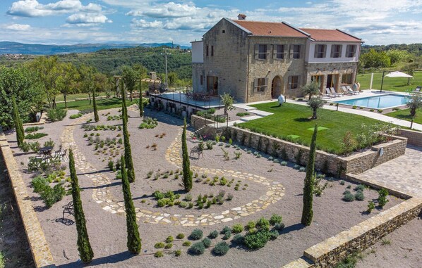 The magnificent Villa Paradiso dIstria could truly become your personal paradise on earth. The imposing building stands on a hill in the north of Istria surrounded by the fabulous landscape. The beautiful panoramic view will certainly put you at peace. The heart of the villa, however, is the refreshing 61m2 outdoor pool, where you will probably spend most of your well-deserved vacation. Comfortable sun loungers invite you to relax while being pampered by the Istrian sun. The barbecue area is ideal for putting your grilling skills to the test and enjoying delicious meals of local specialties with family and friends.
